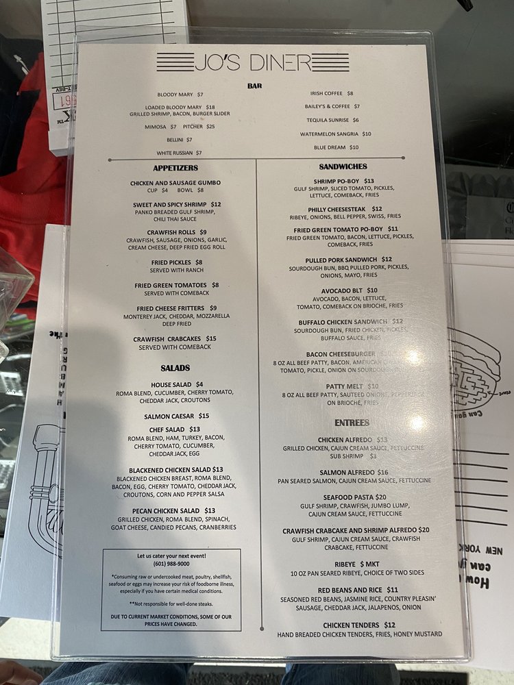 Jo's Diner Menu